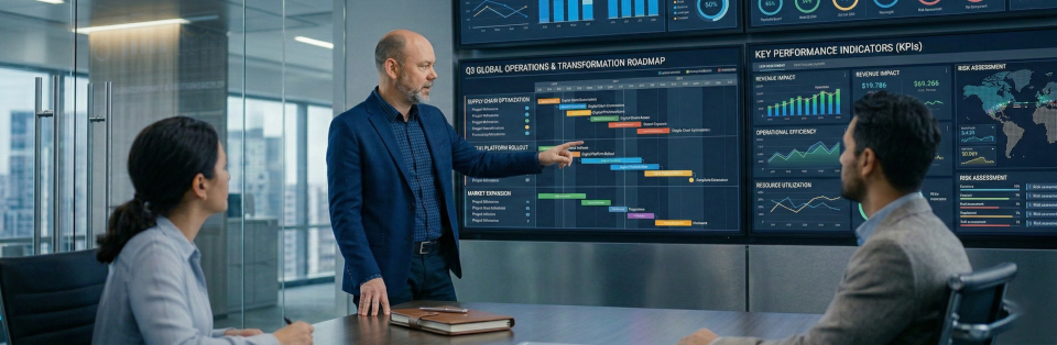 - Delivery & Operations: Scaled Agile (SAFe), PMO Architecture, Turnaround Strategy, Change
